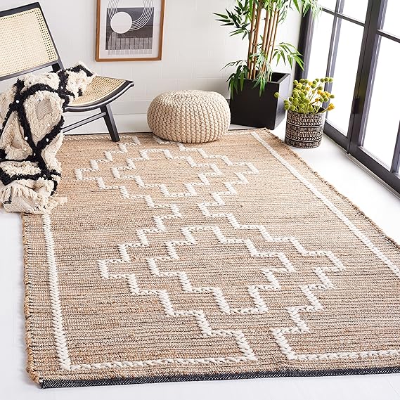 SAFAVIEH Natural Fiber Collection Area Rug - 8' x 10', Natural & Ivory, Flat Weave Farmhouse Jute Design, Ideal for High Traffic Areas in Living Room, Bedroom (NFB375A)