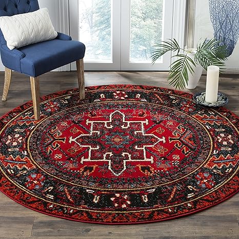 SAFAVIEH Vintage Hamadan Collection 8' Round Red/Multi VTH211A Traditional Oriental Living Room Dining Bedroom Foyer Area Rug
