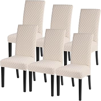 SearchI Dining Chair Covers Stretch Jacquard Parsons Chair Slipcovers Seat Protector Set of 6, Removable Washable Spandex Kitchen Chair Covers for Dining Room ‰__Beige‰__