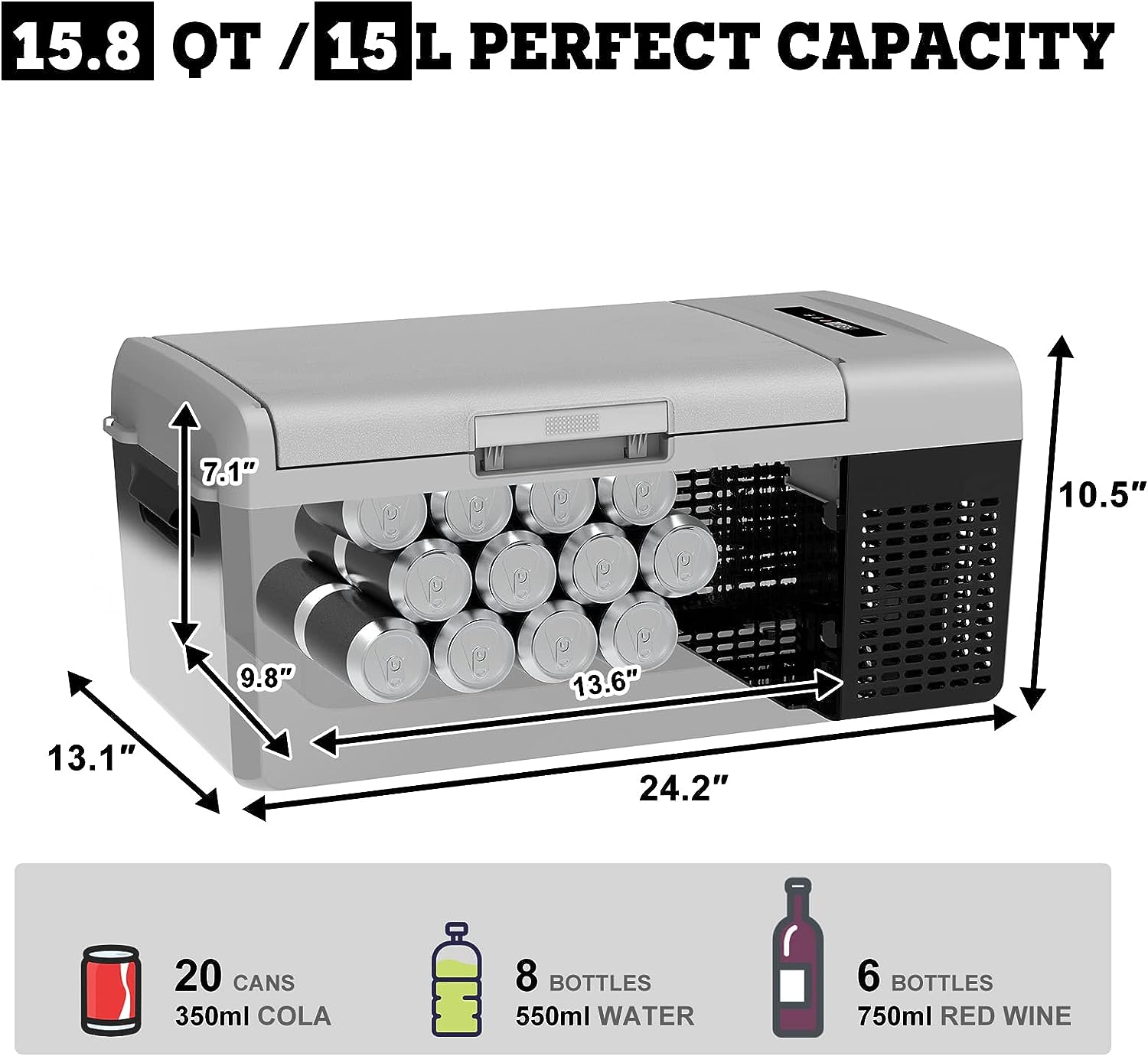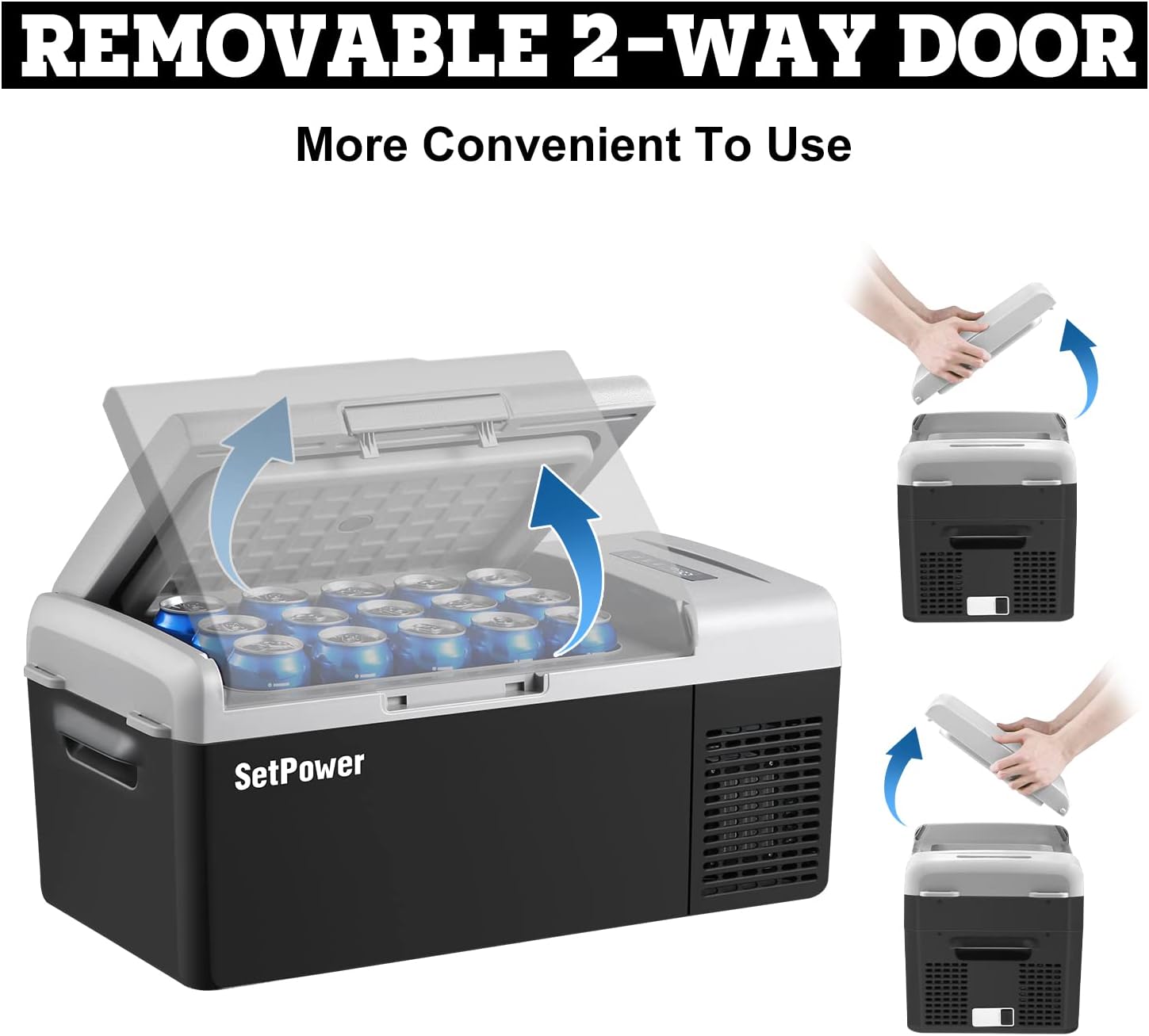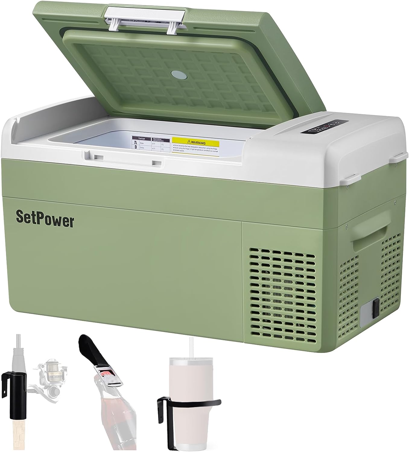 Setpower FC15 12 Volt Refrigerator, Portable Freezer, 15.8 QT(15L) RV Refrigerator, 12V Car Fridge, Fridge Cooler Fast Cooling -4℉-68℉, Electric Cooler 12/24V DC For Car, RV, Camping, Trave, Truck, Boat or Home Use, Green