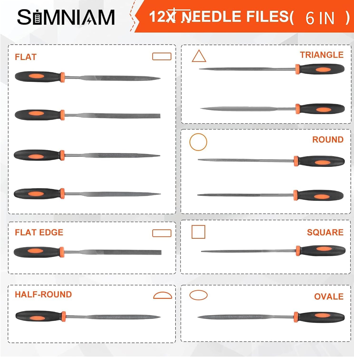 Simniam 18Pcs Professional Files Set, Premium T12 Metal Files with Suitcase, Flat/Triangle/Half-Round/Round Large Files & 12x Needle Files&Cleaning Brush, Perfect for Wood, Metal&DIY Project
