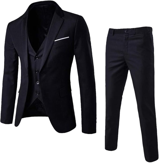 SINHE Men___s 2-Piece/3-Piece Suit Blazer Dress, Slim Fit Suit One Button Business Wedding Party Jacket Vest & Pant