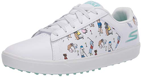 Skechers Men's Women's Go Drive Dogs at Play Spikeless Golf Shoe, White/Blue, 8
