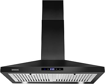 SNDOAS Black Range Hood 30 Inch, Stainless Steel Wall Mounted Kitchen Hood with Touch Controls, Ducted/Ductless Convertible, Chimney-Style Stove Hood Vent for Kitchen, Baffle Filters, Black Painted Finish