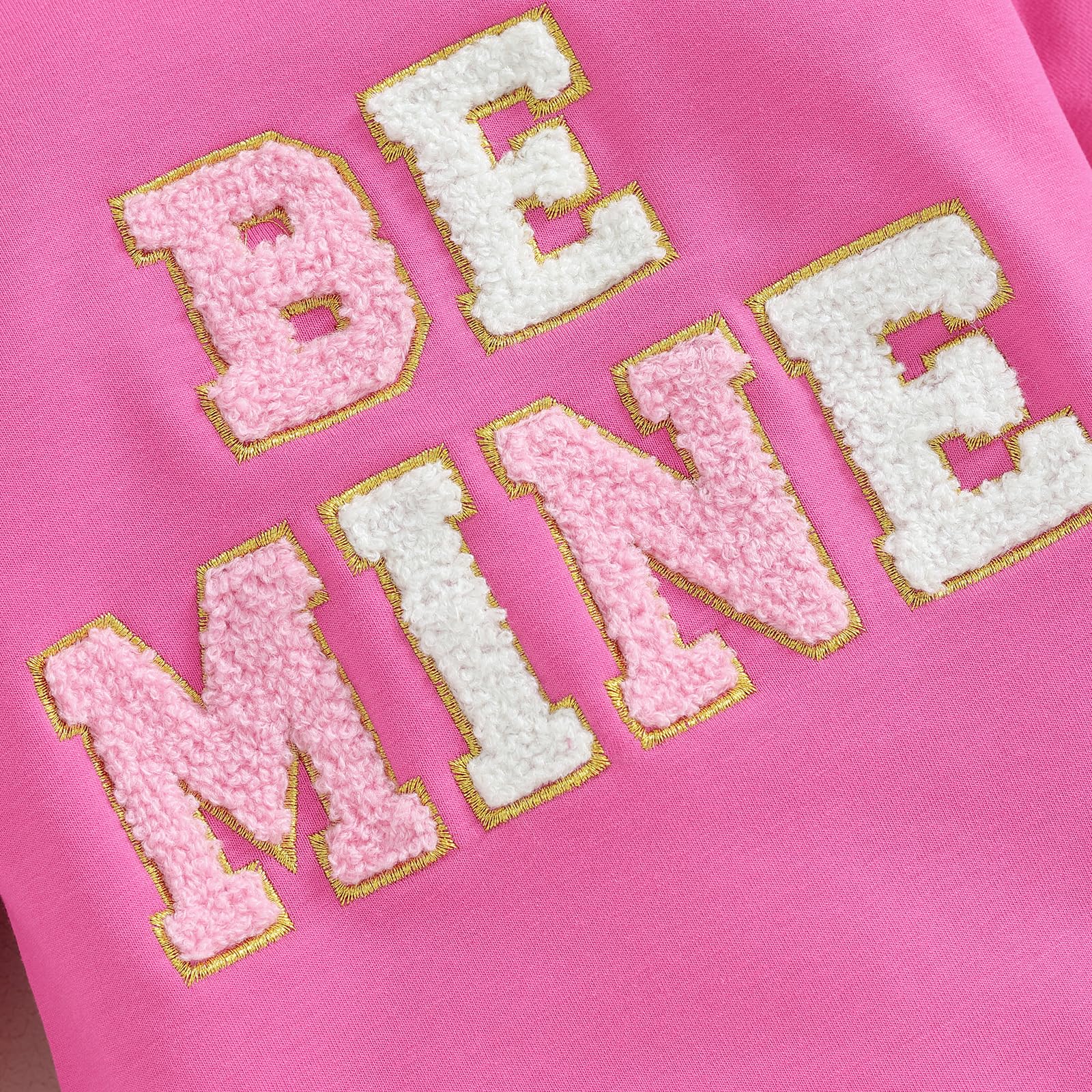 • DESIGN: Unique Valentines day baby girl outfit, Heart embroidered patch bubble romper, vintage crewneck valentines day sweatshirt, long sleeve valentines day shirt for toddler girl, ''BE MINE'',''SWEET HEART'',''HUG ME'' letter embroidered bubble onesie