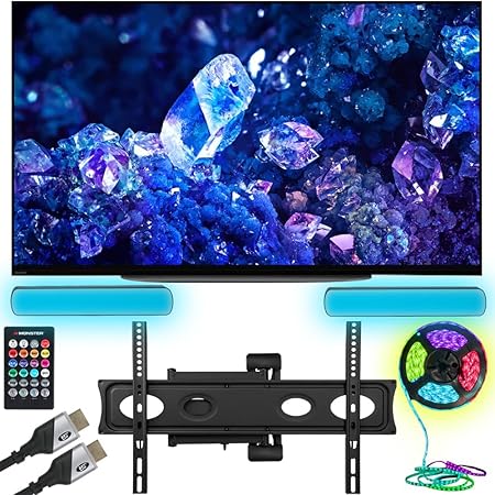 Sony XR48A90K Bravia XR A90K 48" 4K HDR OLED Smart TV Bundle with Monster TV Full Motion Wall Mount for 32"-70" with 6 Piece Sound Reactive Lighting Kit