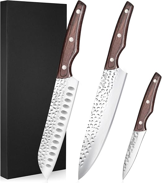 syvio Chef Knife Set, Kitchen Knives with High Carbon Stainless Steel & Wooden Handle, Kitchen Knife Set 3 PCS-8" Chef_†_s Knife &7" Santoku Knife&5" Paring Knife with Gift Box