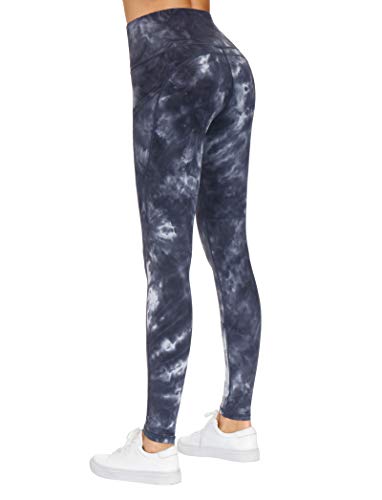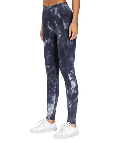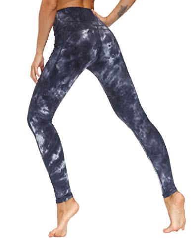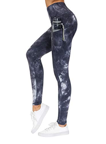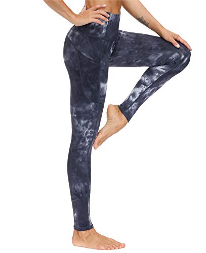 THE GYM PEOPLE Thick High Waist Yoga Pants with Pockets, Tummy Control Workout Running Yoga Leggings for Women (Medium, Tie Dye Black Grey)