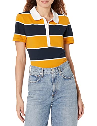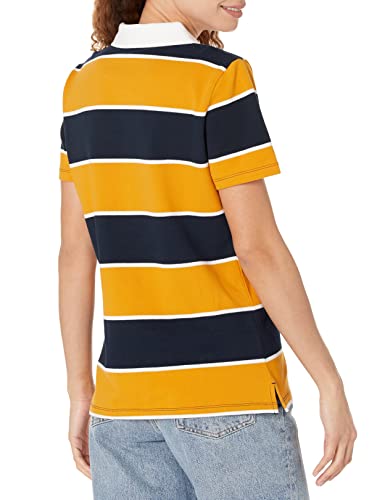 Tommy Hilfiger Women's Classic Short Sleeve Rugby Polo Shirt, Sky Captain/Sunflower, Small