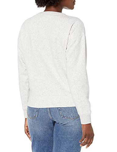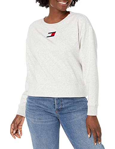 Tommy Hilfiger Women's Long Sleeve Logo Pullover Sweatshirt, White Stone Heather 01, Medium