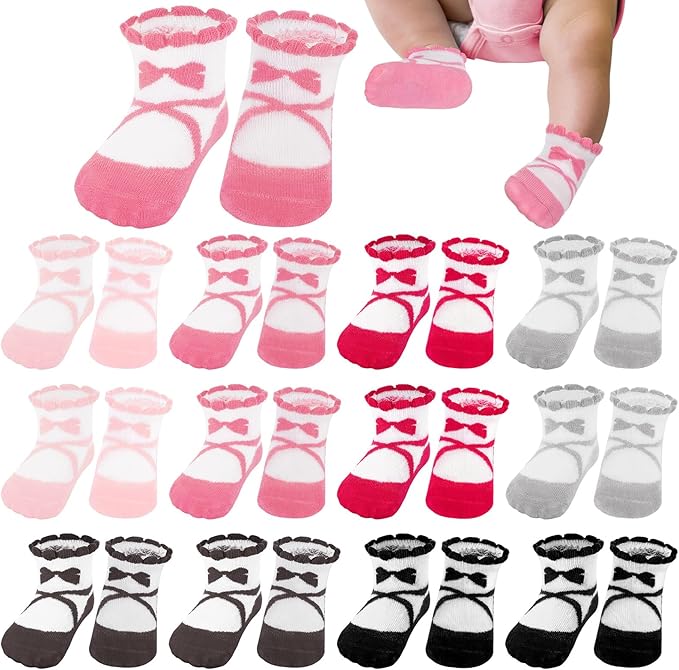 Toulite 12 Pairs Preemie Socks Baby Girls Boys Premature Ruffle Sock Preemie Turn Cuff Cotton Sock Hospital NICU for Newborn (Ballet Style)
