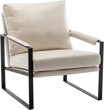 UNICOO Faux Leather Metal Frame Accent Chair - Modern Accent Chairs for Living Room, Bedroom, or Office - Armchairs Living Room Chairs Leisure Chair Reception Chair(ZKL-239K-BE Beige)