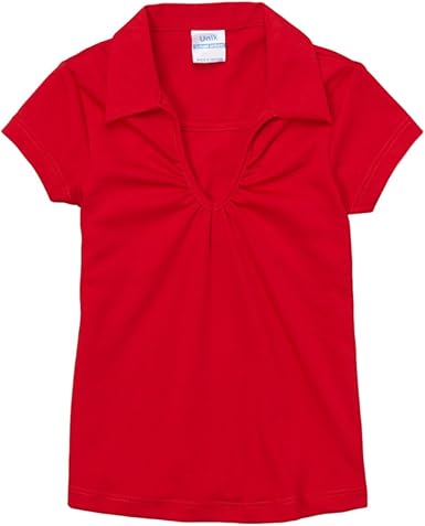 unik Girl's Uniform V-Neck Collar Shirt Short Sleeve Great for School Burgundy Navy White Sky Blue Green Purple Yellow Red