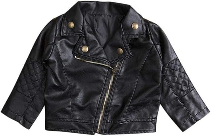 UNIQUEONE Baby Boys Girls Kids Outfits Spring Autumn PU Faux Leather Lapel Jacket Oblique Zipper Outerwear Coat