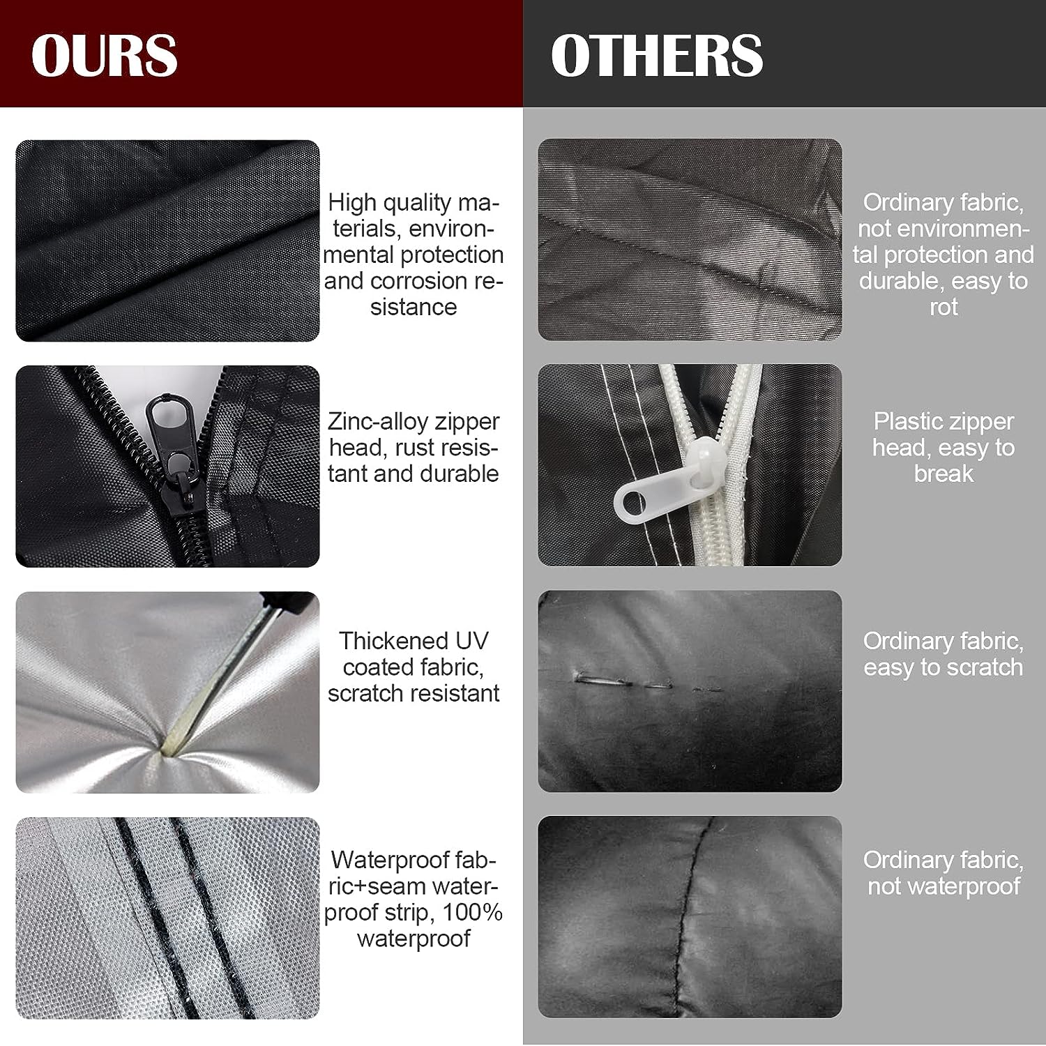 • ALL WEATHER PROTECTION - dopts material with waterproof oxford cloth double stitched and reinforced seams,provides overall protection of vehicle from all weather elements: dust, snow, leaves, rain and other harmful material.Good for snowproof in winter and keeps cool in summer