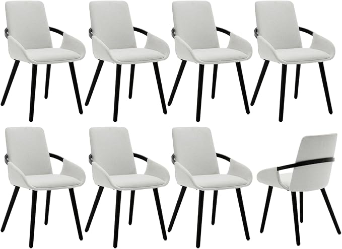 Upholstered Farmhouse Dining Chairs Set of 8 Mid Century Modern Boucle Fabric Dining Room Chairs Black Wood Kitchen Chairs Side Chairs Linen Arm Chair for Living Room/Restaurant, Beige