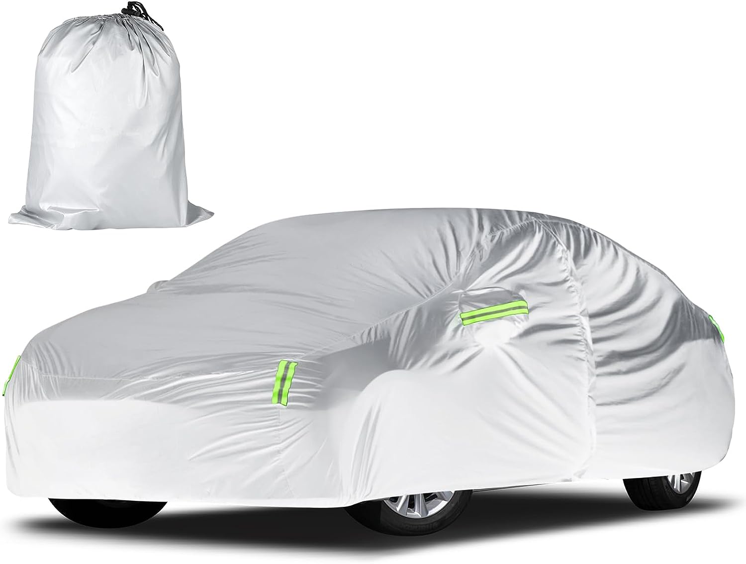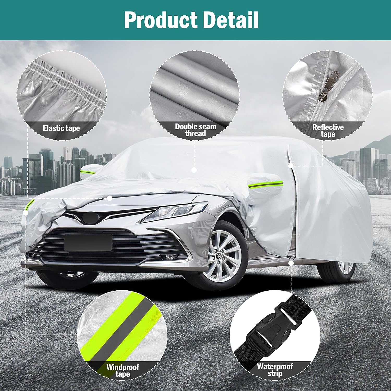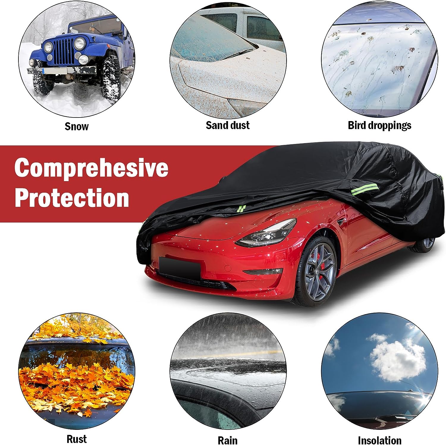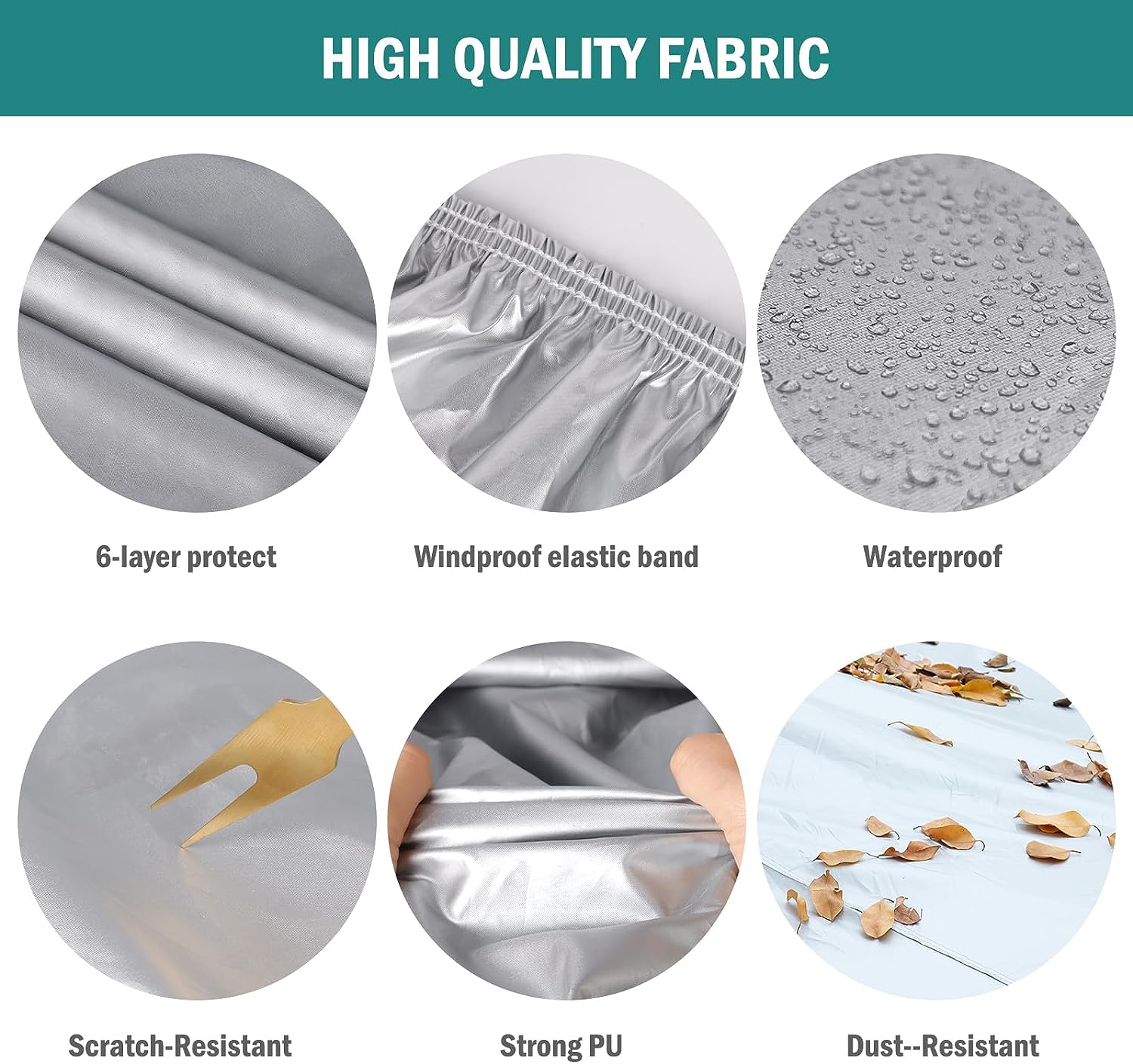 • ALL WEATHER PROTECTION - Update material with waterproof cloth double stitched and reinforced seams,provides overall protection of vehicle from all weather elements: , hail snow, dust, rain and other harmful material.Good for snowproof in winter and keeps cool in summer
