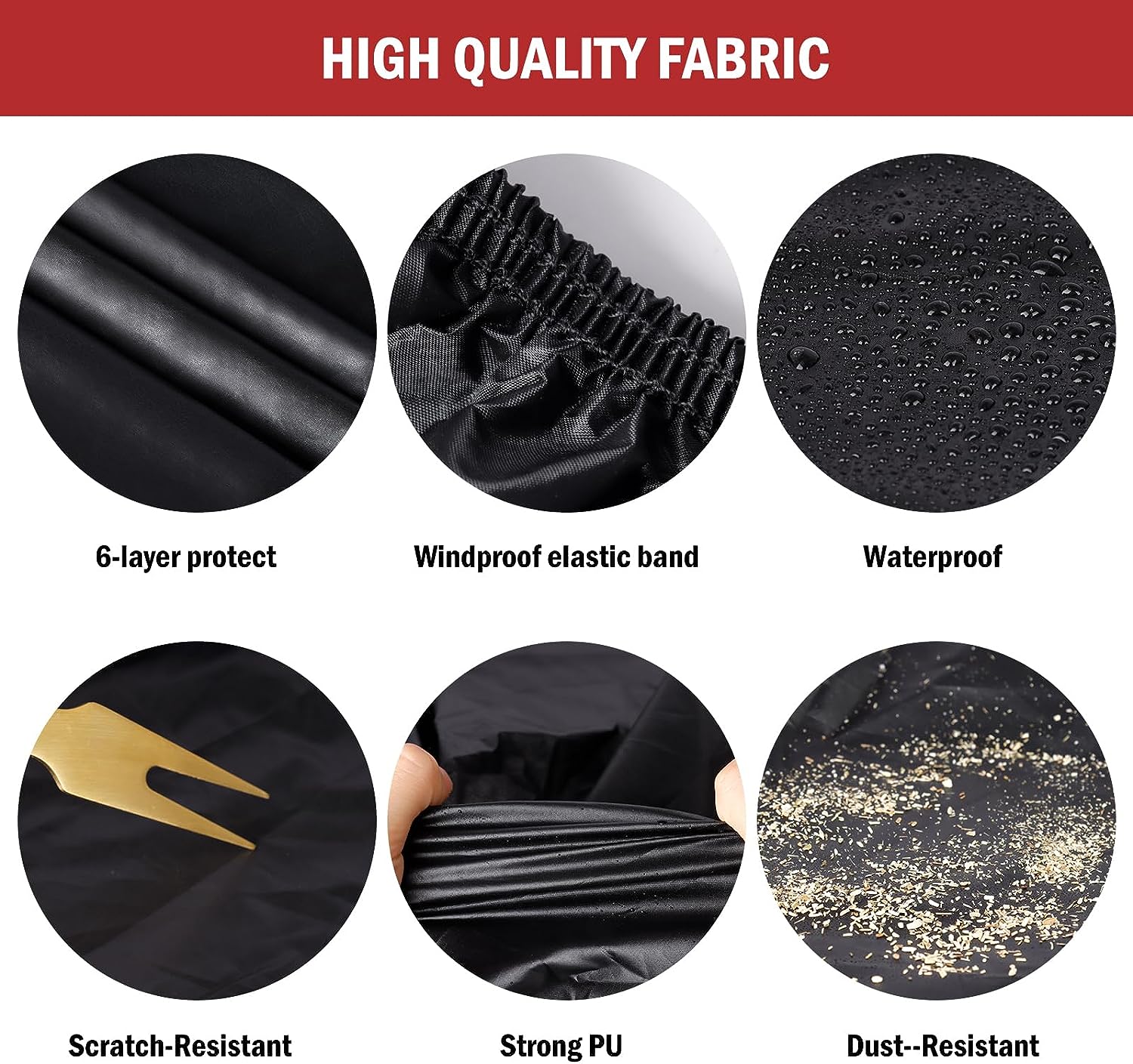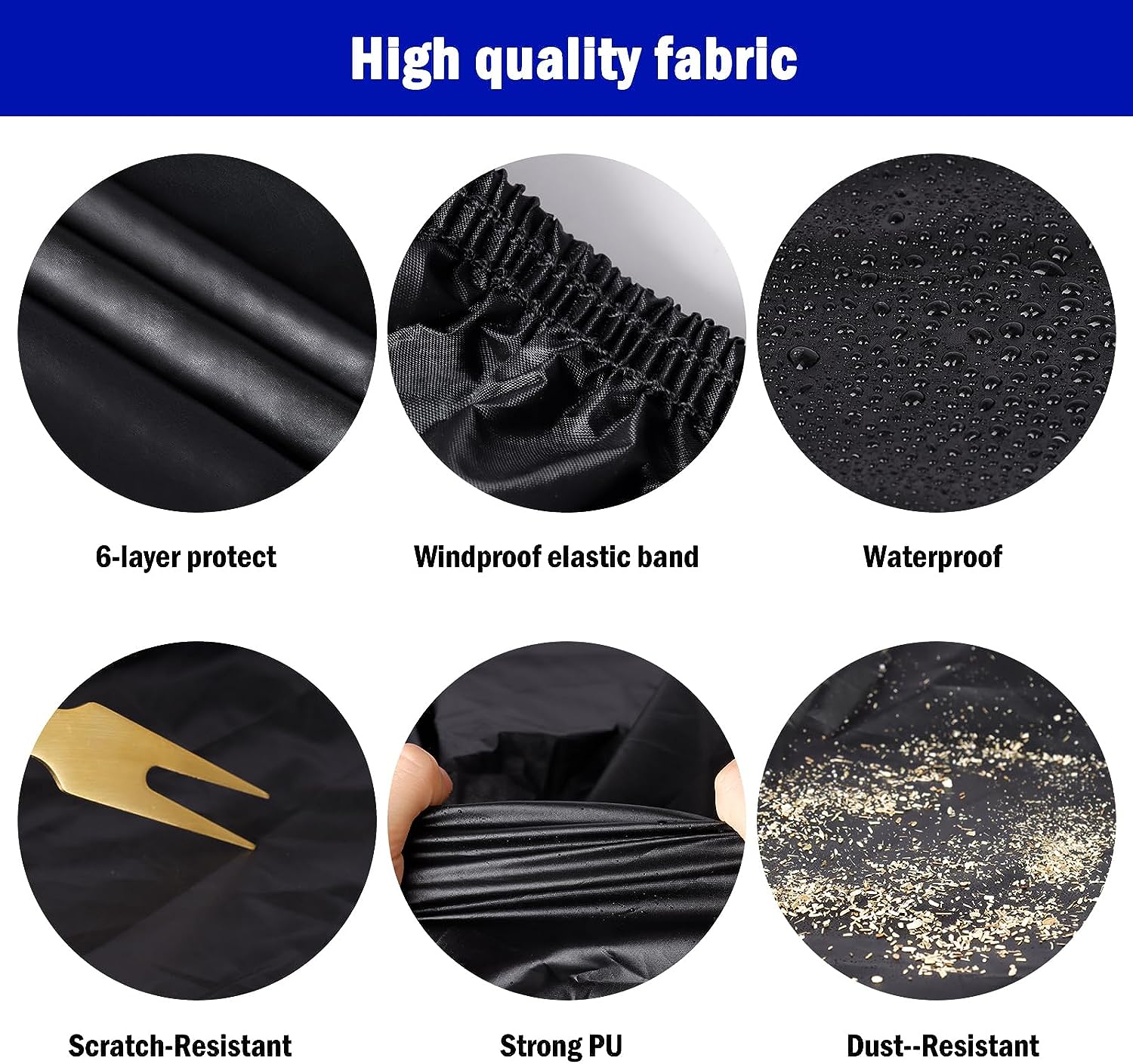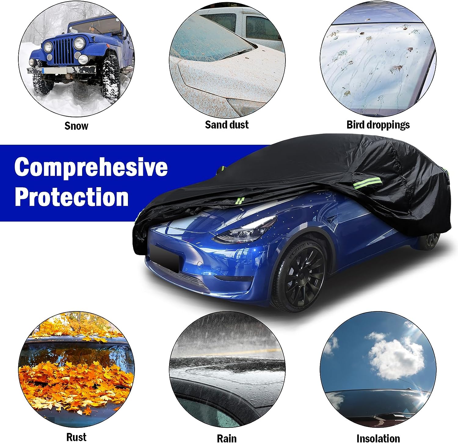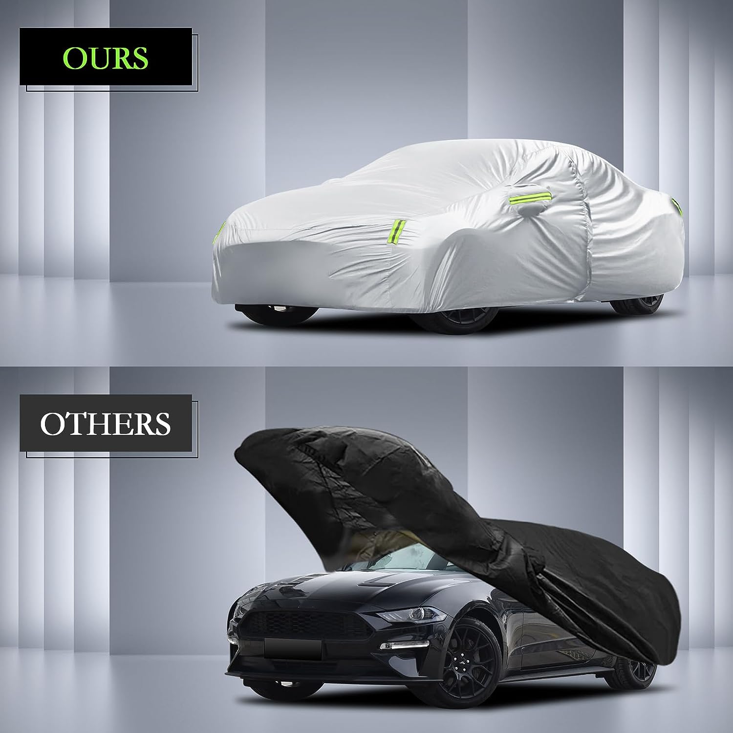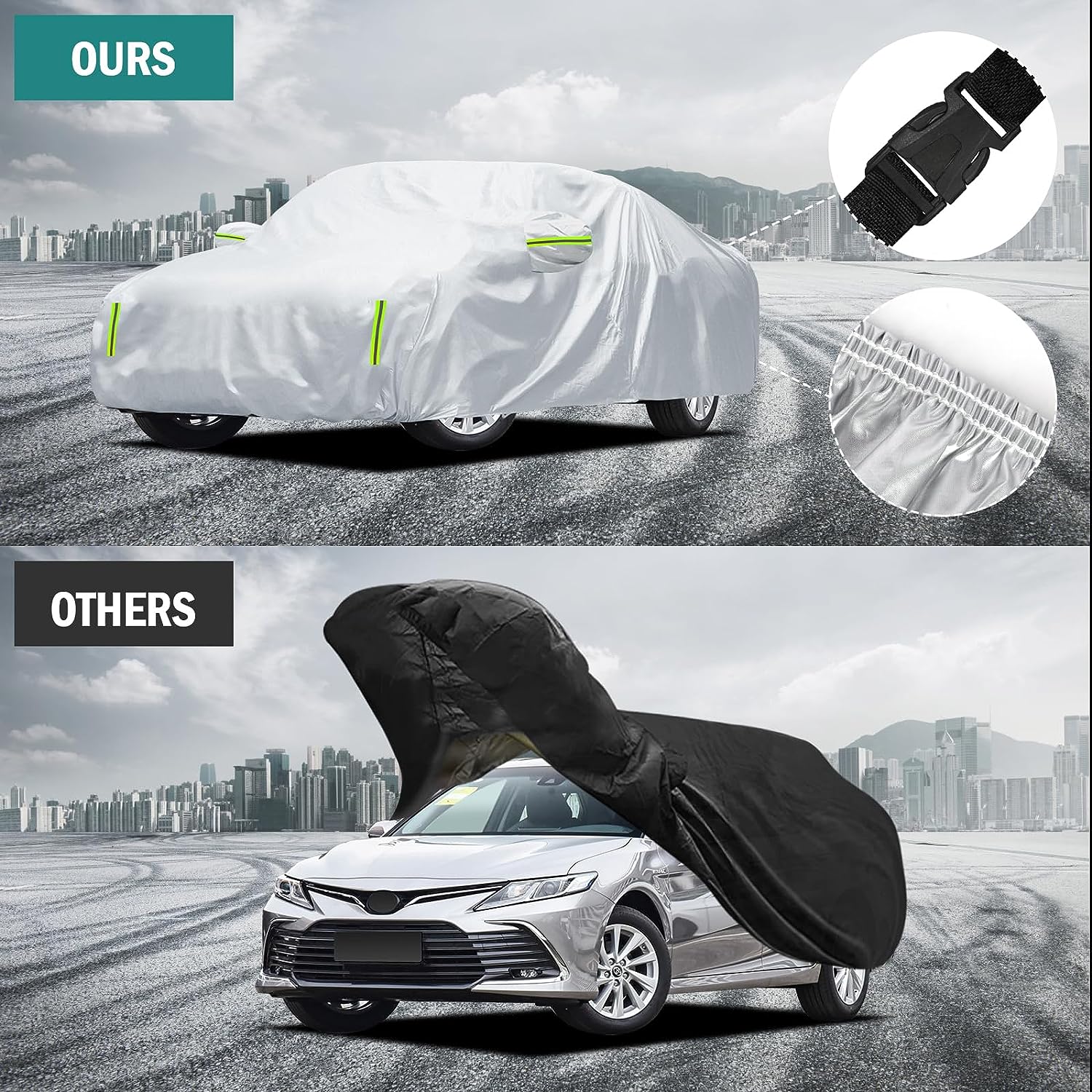 • ALL WEATHER PROTECTION - Update material with waterproof cloth double stitched and reinforced seams,provides overall protection of vehicle from all weather elements: , hail snow, dust, rain and other harmful material.Good for snowproof in winter and keeps cool in summer