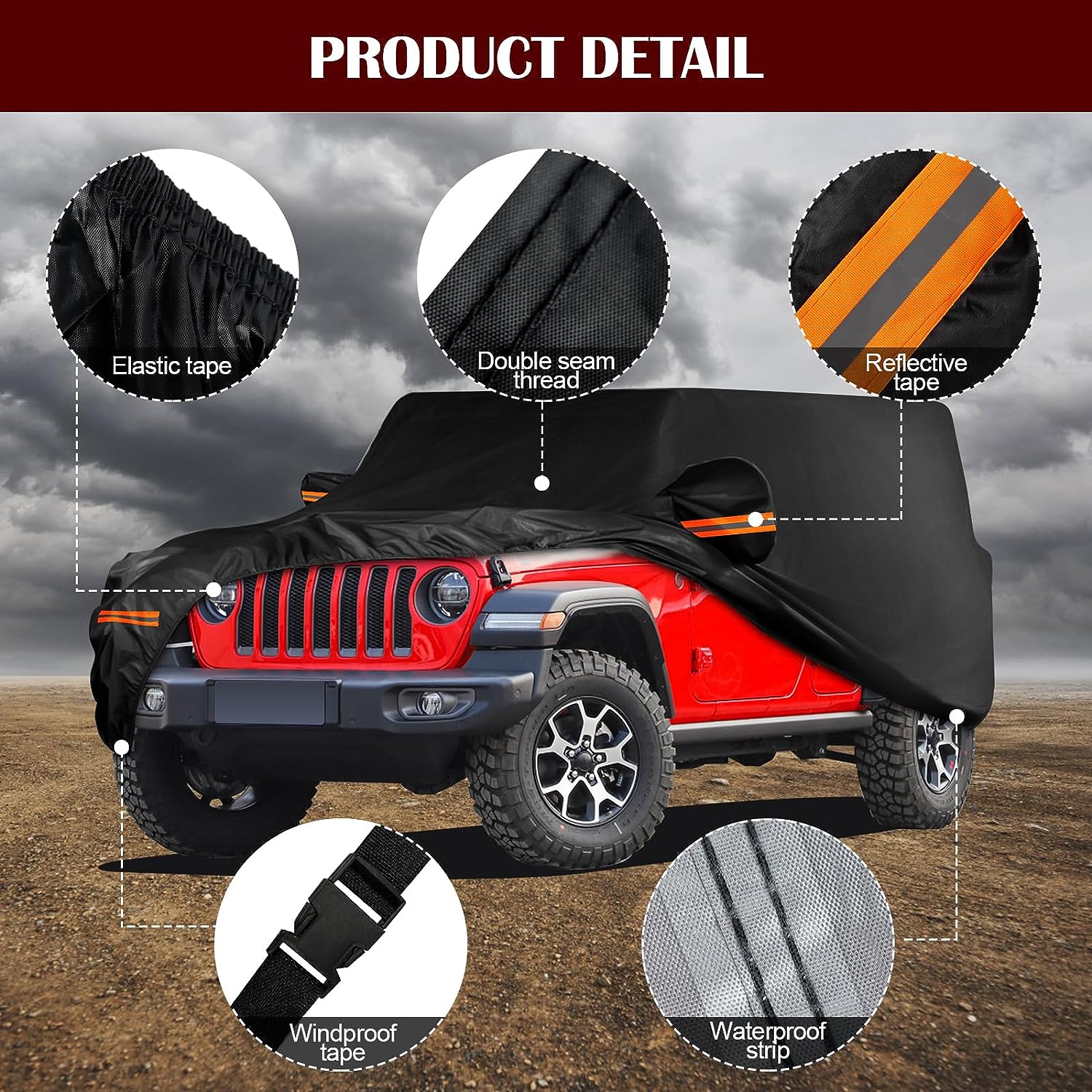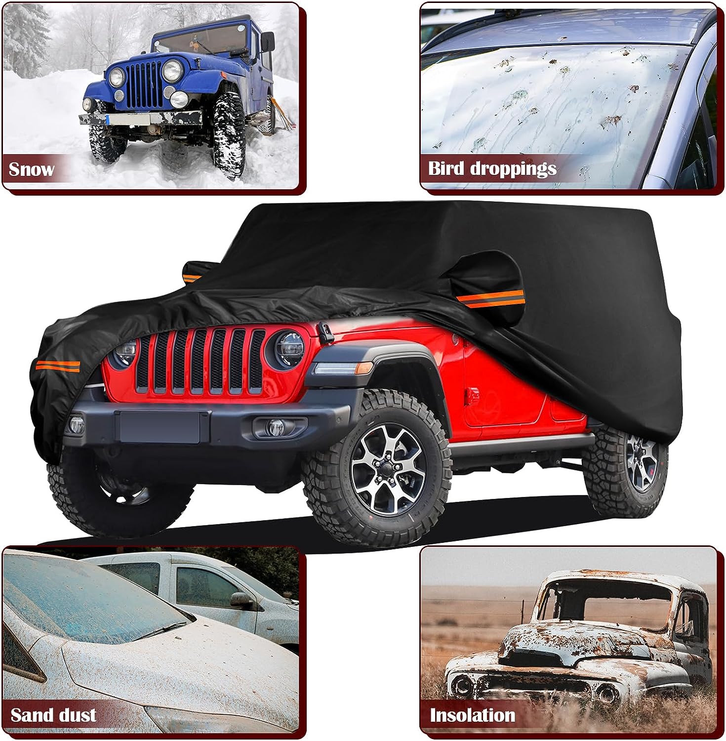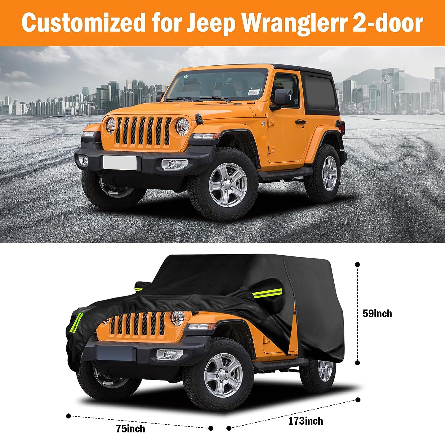 Waterproof Car Cover for Jeep Wrangler 2 Door 1987-2023 JK JL CJ YJ TJ Outdoor Sun Rain Snow Hail Protection with Driver Door Zipper