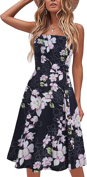 Women's Casual Summer Beach Flattering Flowy A-Line Spaghetti Straps Solid Cotton Button Down Midi Sundress