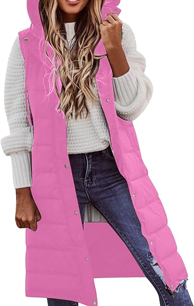 Women's Long Down Sleeveless Hooded Jacket Plus Size Winter Warm Slim Zipper Coats Outdoor Jackets Puffer Vest