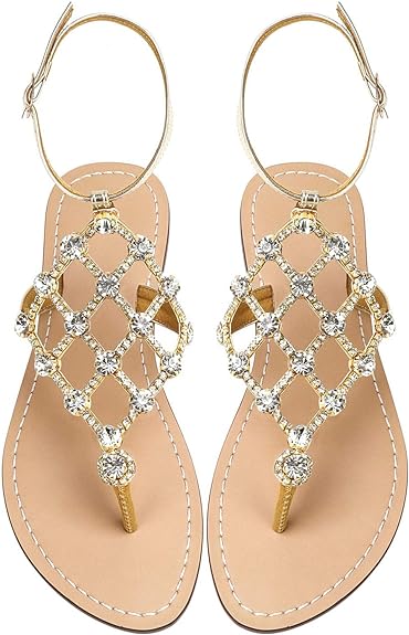 Women's Rhinestone Flat Sandals T-Strap Thong Sandals Summer Flat Sandals Flip Flop Sandals for Women