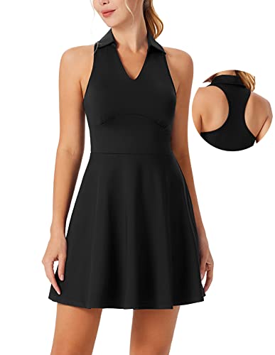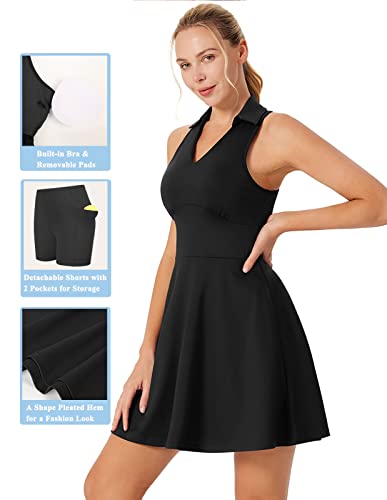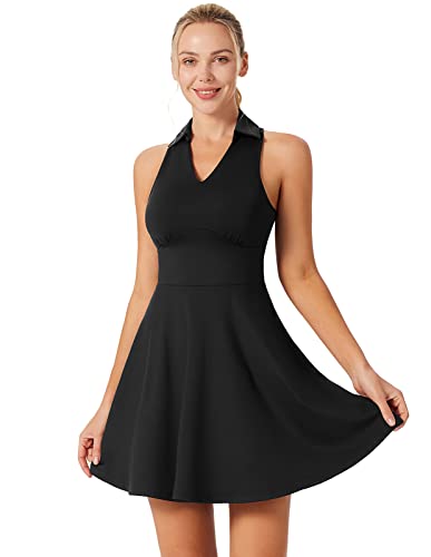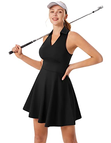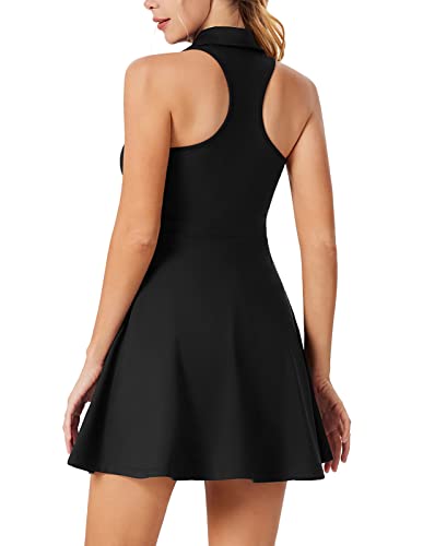 Womens's Sleeveless Golf Tennis Dress with Built-in Bra & Shorts Pockets Athletic Dress for Workout Exercise S Black