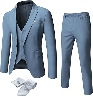 WULFUL Men_æ_s Slim Fit Suit One Button 3-Piece Blazer Dress Business Wedding Party Jacket Vest & Pant