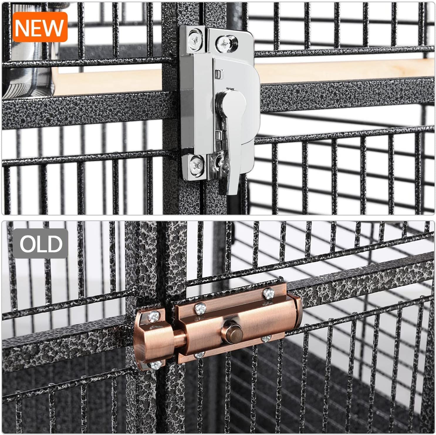 • 🦜【Protected With Locks】The button lock on the front door can keep your small genius safely in the cage when unattended, while the lock design is straightforward for pet parents. The feeder doors are also secured with locking mechanisms.