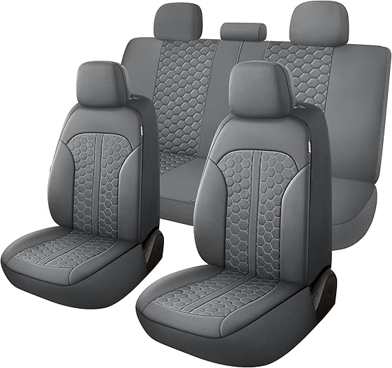 YGL Luxury PU Leather Car Seat Covers Full Set, Anti-Stain Interior Protector.Waterproof Auto Seat Covers for Cars, Trucks, Van, SUV, Pickup, Airbag Compatible (Gray)