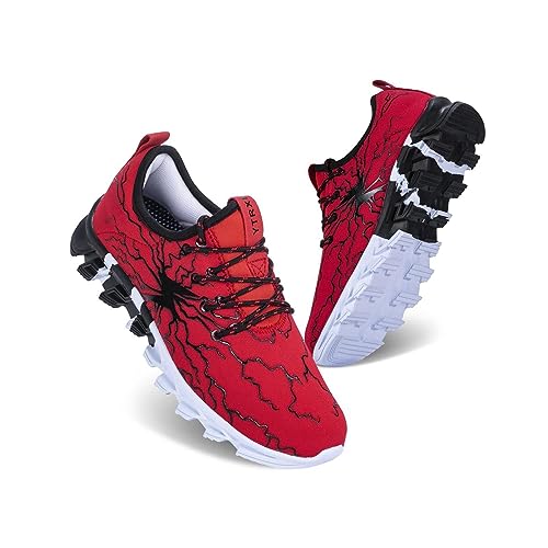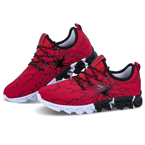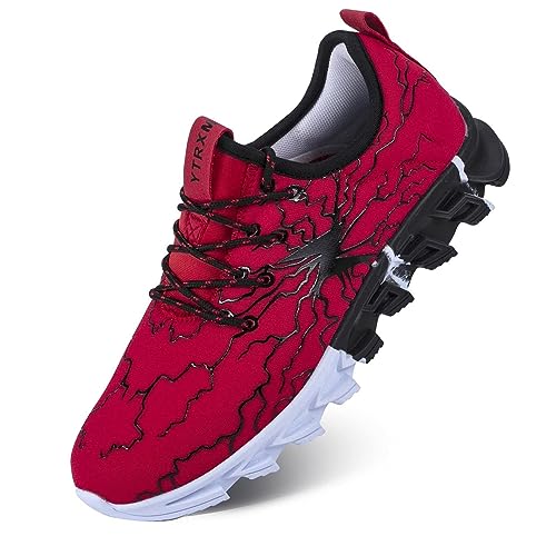 YTRXM Boys Girls Athletic Shoes Size 5 Slip on Children Tennis Sneakers Lightweight Fashion Running Walking Sports Shoes for Big Kid Red