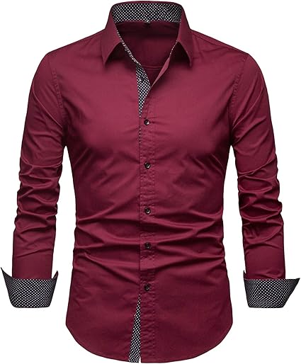 Manwan walk Men's Business Casual Long Sleeves Solid Button Down Dress Shirts