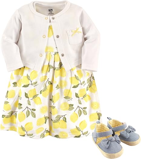 Hudson Baby baby-girls Cotton Dress, Cardigan and Shoe Set