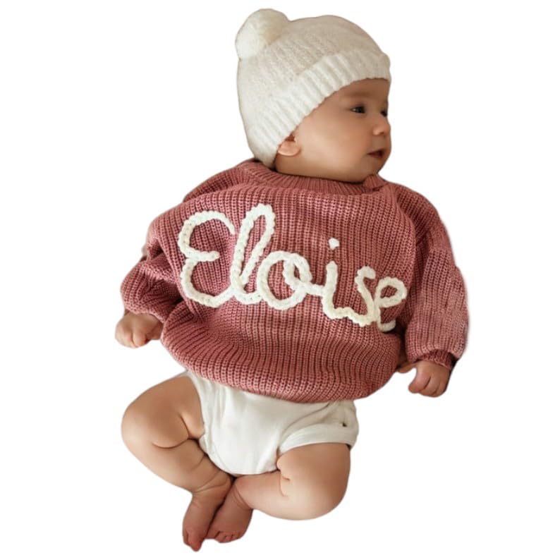 Personalized Baby Sweater, Custom Hand-Embroidered Name and Monogram, Baby Knit Sweater, Crochet Sweater, Toddler Gift for Baby Shower, Newborn Outfits Gift, Baby Gfits for Girls Boys
