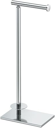 Gatco 1443C Modern Square Base Toilet Paper Holder Stand with Storage, Chrome, 21.13"H
