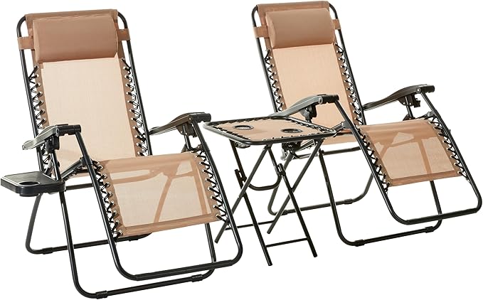 Amazon Basics Outdoor Mesh Adjustable Zero Gravity Lounge Chair Recliners with Side Table, 35 x 26 x 43 inches, Beige