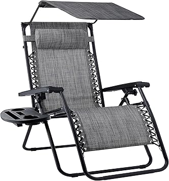 Best Choice Products Folding Zero Gravity Outdoor Recliner Patio Lounge Chair w/Adjustable Canopy Shade, Headrest, Side Accessory Tray, Textilene Mesh - Gray