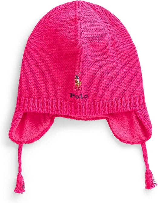 POLO RALPH LAUREN Baby Girl Polo Pony Cotton Earflap Hat (9-24 Months, Pink(2007)/N)