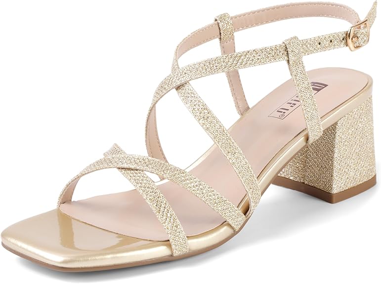 IDIFU IN2 Strappy Heels Chunky Block Square Toe Heels Wedding Prom Bride Bridal Dance Party Dress Shoes for Women Trendy Comfortable Dressy Cute Casual Summer Heeled Sandals Slingback Low Short Heels