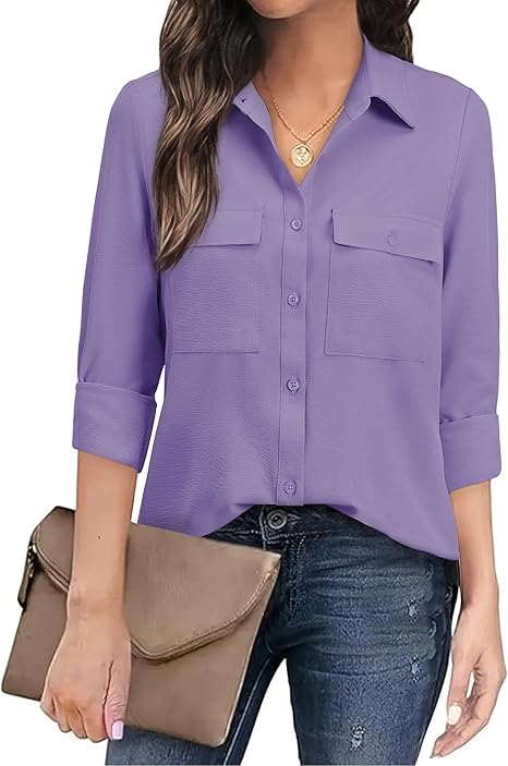 Women's Button Down Blouse Long Sleeve Dress Shirts for Work Office Business Casual Chiffon Tops