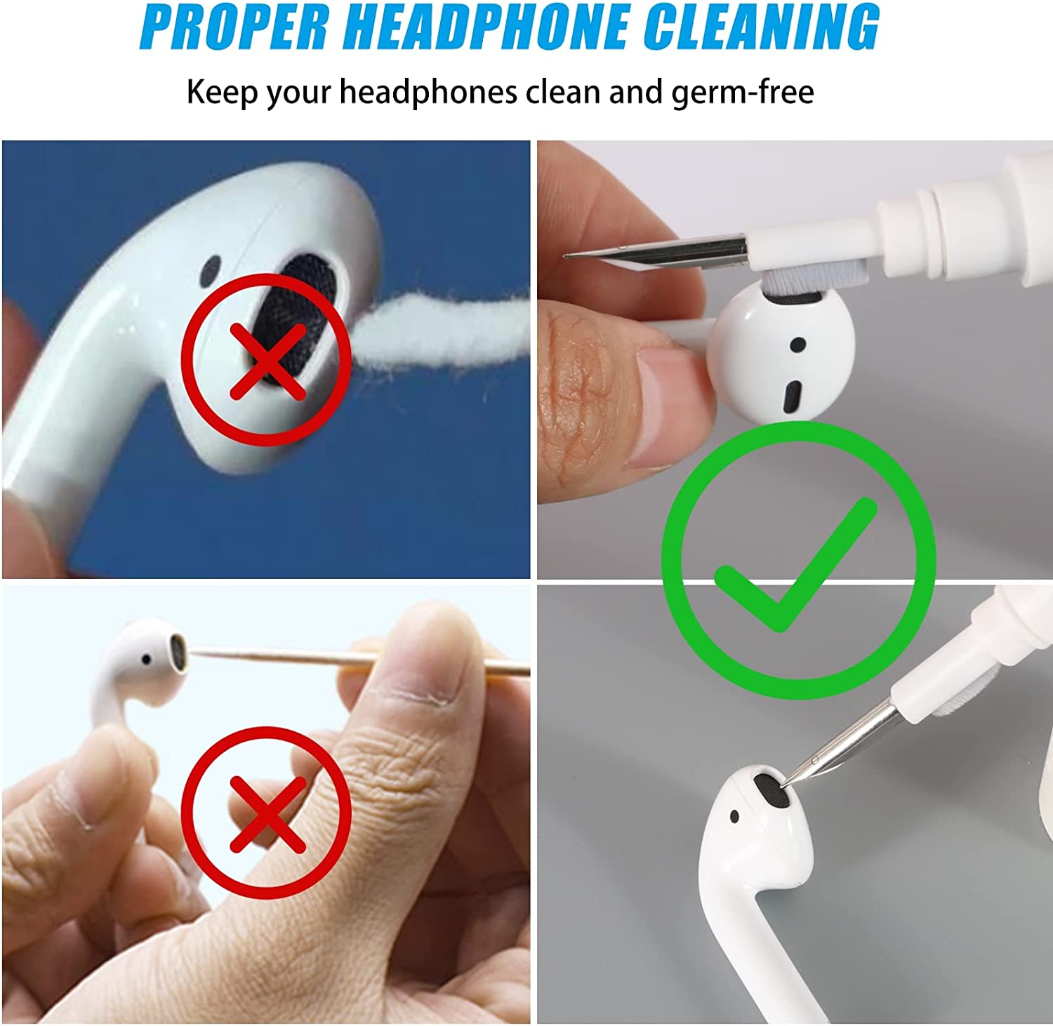 • New Design: Professionally built bluetooth earbuds cleaning pen. It can achieve 360° cleaning without dead ends, cleaning dirty headphones,making your earphones look brand new.