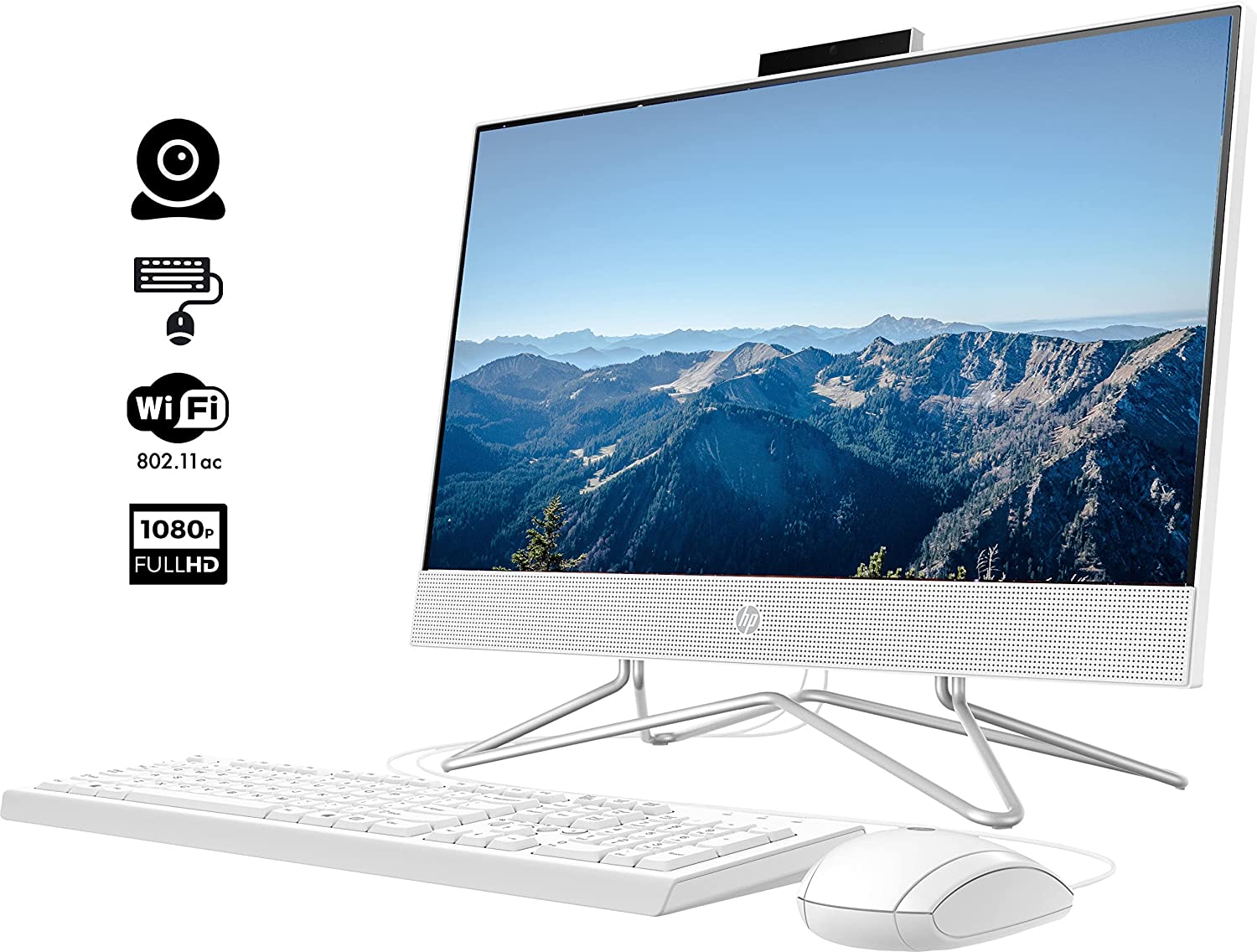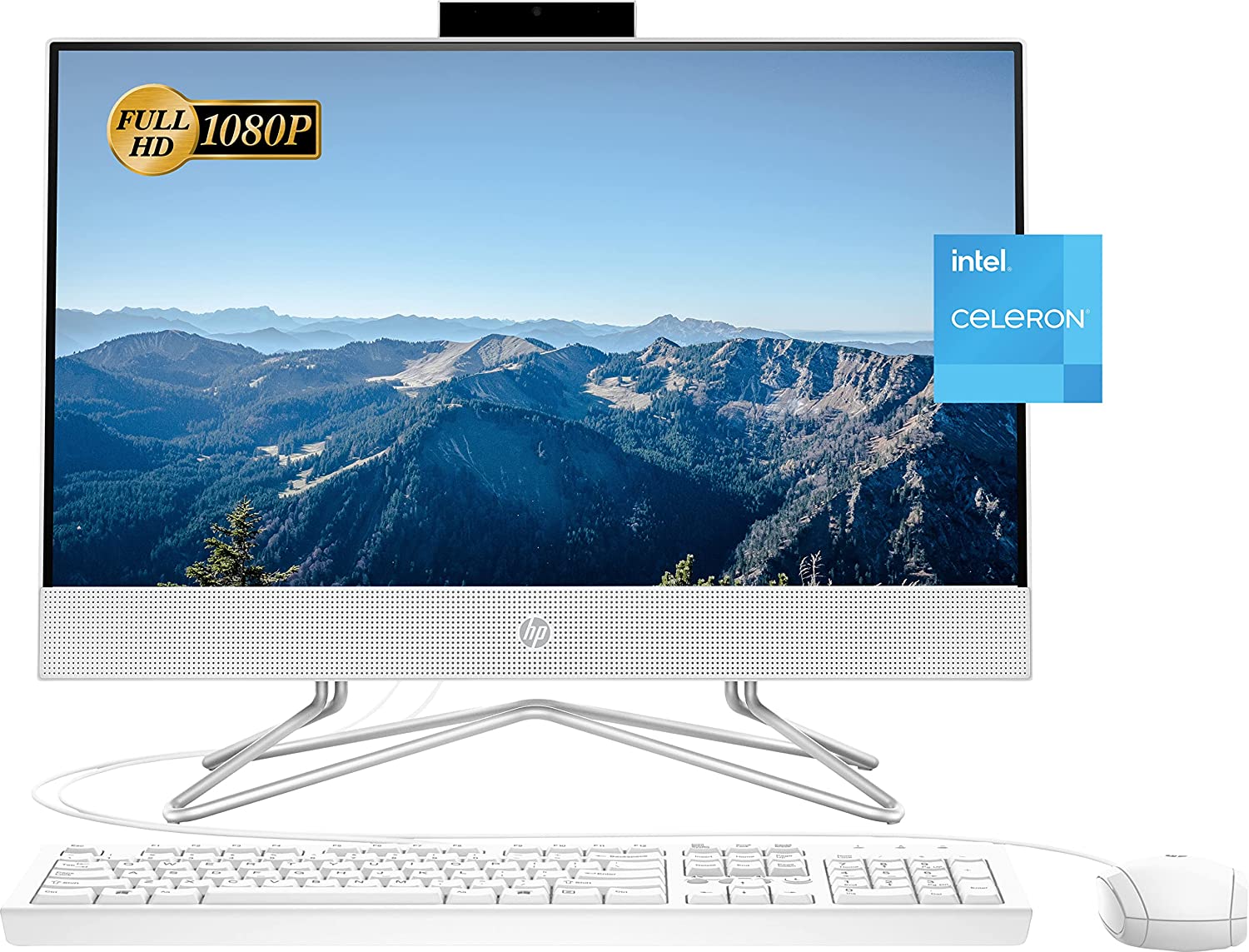 HP All-in-One Desktop, 21.5" FHD Display, Intel Celeron J4025 Processor, 32GB DDR4 RAM, 1TB PCIe SSD, Webcam, Wi-Fi, HDMI, RJ-45, Wired Keyboard&Mouse, Windows 11 Home, White