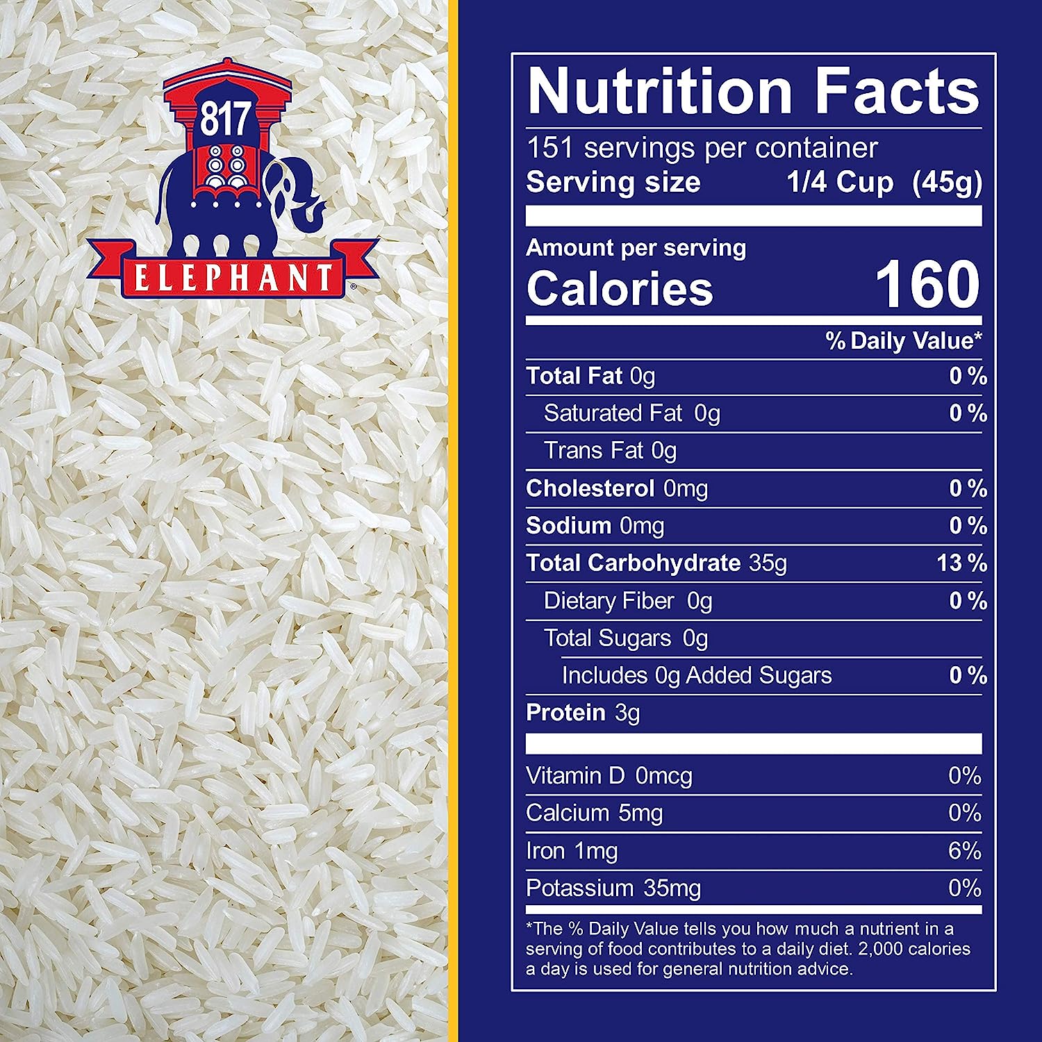 817 Elephant Jasmine Rice White Thai Hom Mali, 15 Lb. Bag