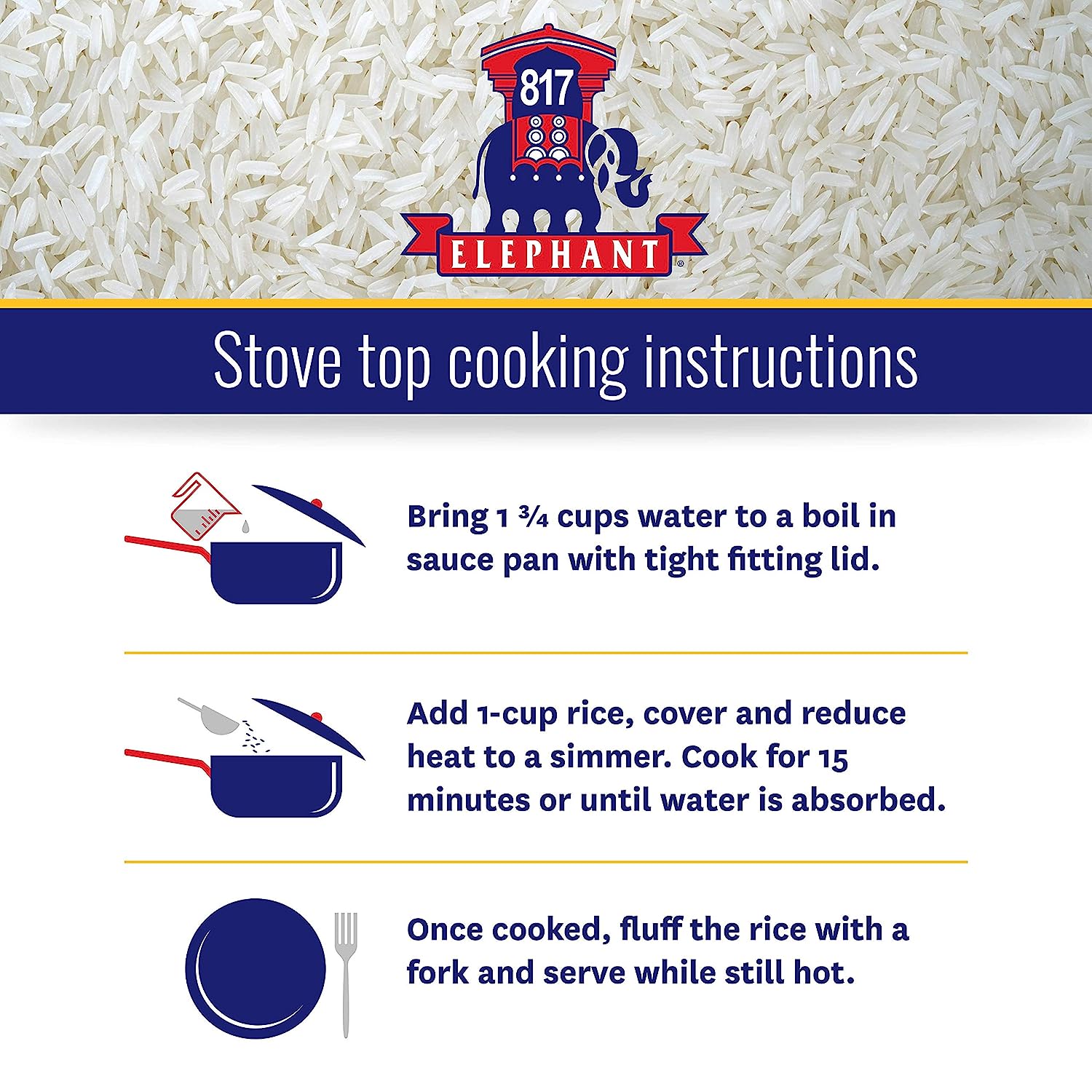 817 Elephant Thai Hom Mali jasmine rice is a long-grain rice with a tender texture and fragrance worthy of its namesake — the sweet-smelling jasmine flower. Known for its “melt in your mouth” flavor and versatility in the kitchen, This aromatic long grain blends perfectly with a wide variety of recipes including stir-fries and bowl based creations. 817 Elephant Thai Hom Mali jasmine rice has been awarded the Thai Hom Mali Rice mark of certification by the department of foreign Trade, Thailand, designating it as jasmine rice that is unparalleled in excellence. At 817 Elephant, we are committed to bringing you the highest quality jasmine rice without compromise or exception. We source our products directly from the regions from where they are renowned to ensure consistent product quality, working closely with local growers, a vital part of our supply chain, in supporting this important and mutually beneficial relationship. With 817 Elephant you’ll get a consistent premium product that has been grown, harvested, stored and cared for with the highest level of integrity and expertise.