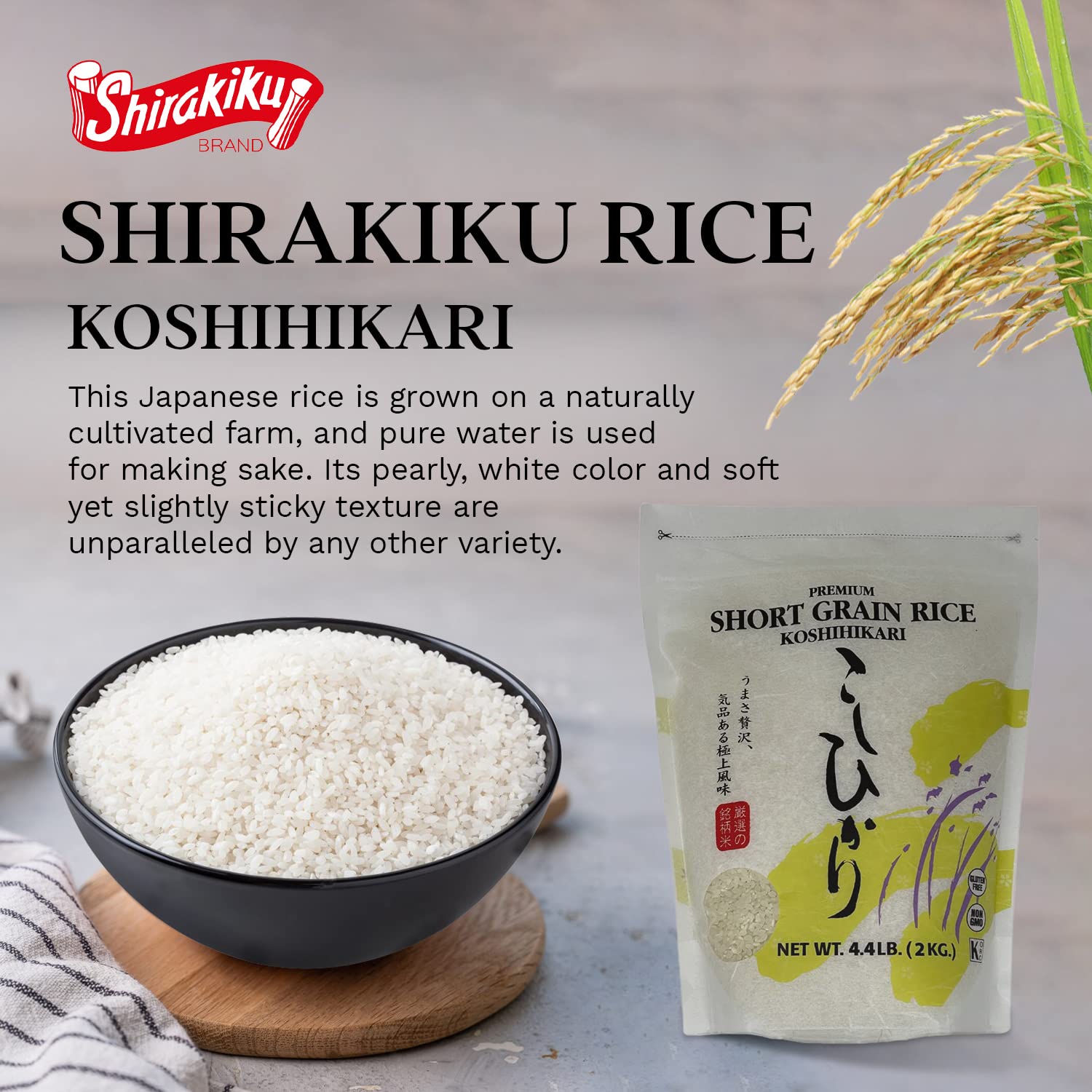 Shirakiku Dried Grains & Rice - Japanese Short Grain White Koshihikari Rice - Uncooked Premium Quality Low Carb Sweet Sticky Sushi Rice, 15 Pounds bag