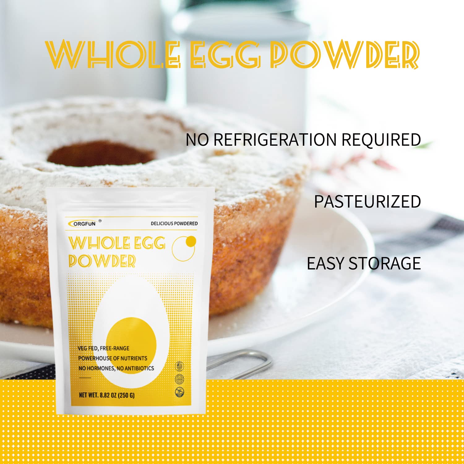 ORGFUN Whole Eggs Powder, Just One Ingredient, Pasteurized Made in USA Great for Baking , 8.82 Oz
