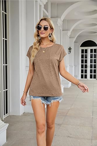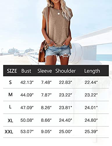 MEROKEETY Women's Casual Cap Sleeve T Shirts Basic Summer Tops Loose Solid Color Blouse, Khaki, Medium