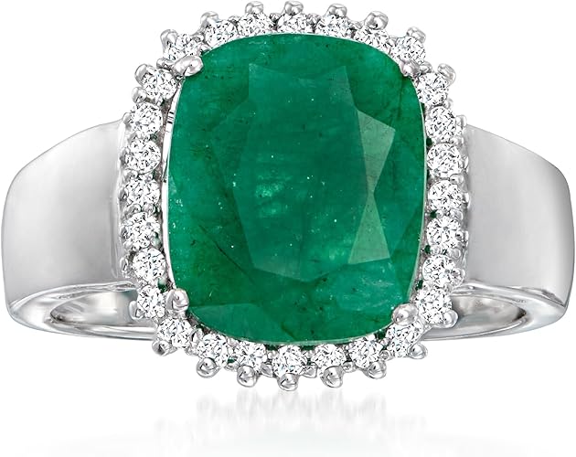 Ross-Simons 3.00 Carat Emerald and .20 ct. t.w. White Topaz Ring in Sterling Silver