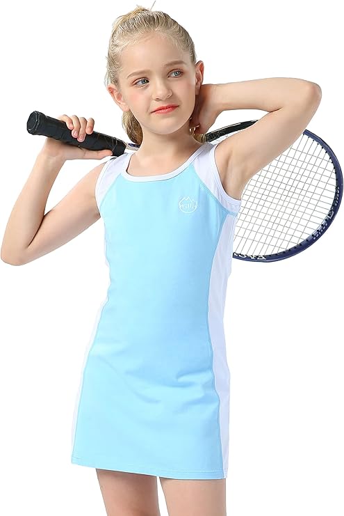 Willit Girls Tennis Golf Dress Outfit Kids Cotton Sleeveless Active Sports Dress with Shorts