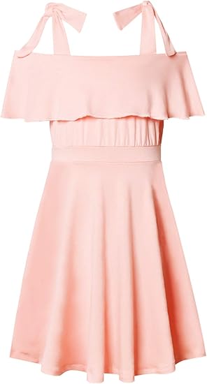 Mirawise Girl's Tie Shoulder Sleeveless Ruffle Summer Casual Cotton Sundress A-line Swing Dress for 4-12 Years Kids